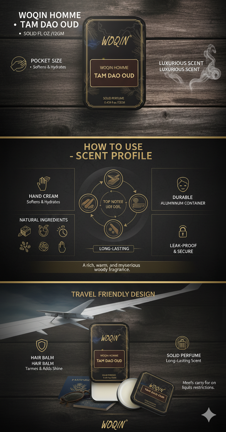 WOQIN® Tam Dao Solid Perfume | Alcohol-Free & Non-Greasy Cologne | Rich & Long-Lasting Fragrance | 12g (Tam Dao Premium Fragrance – Woody, Oriental, Exotic)
